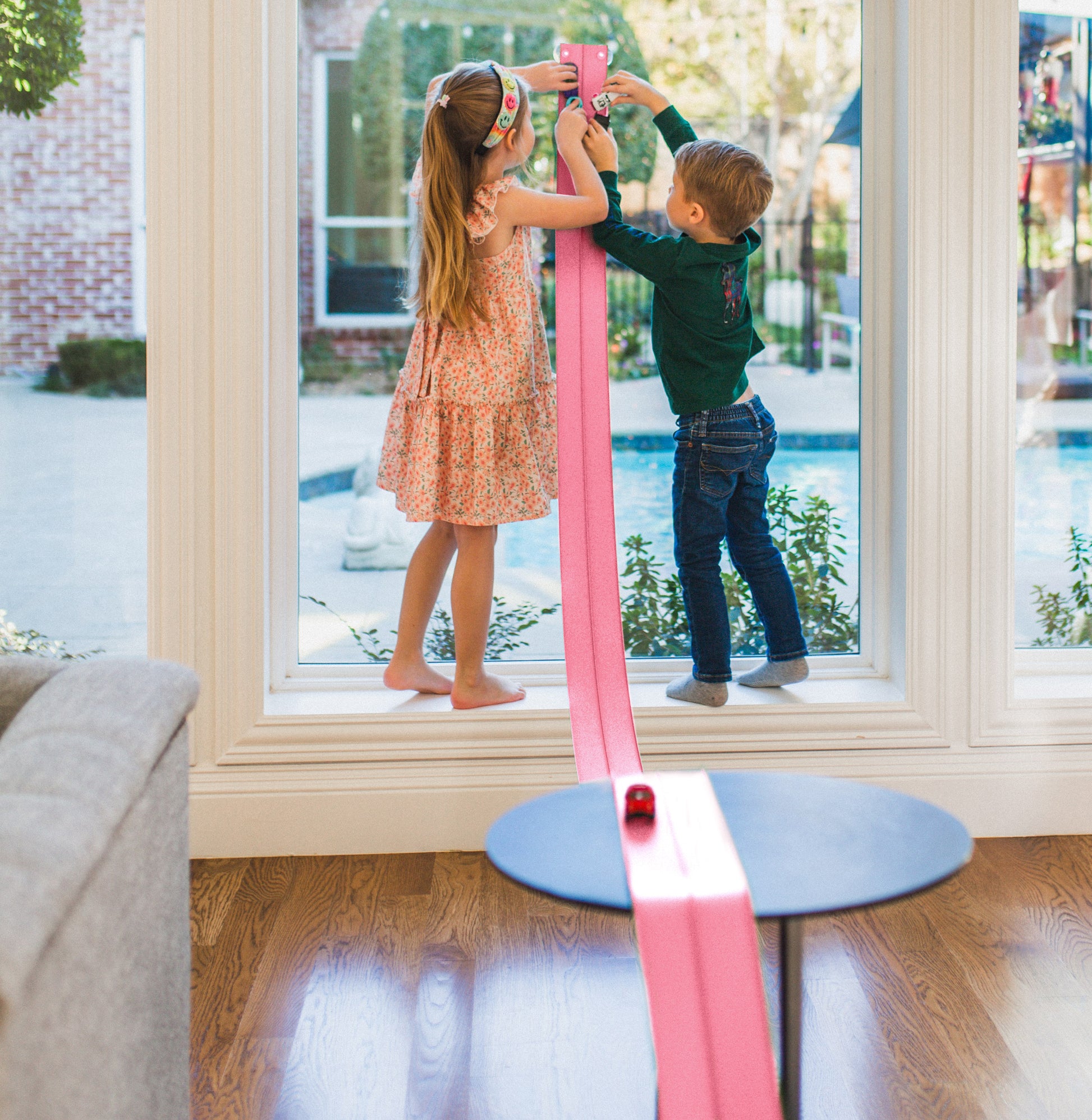 Racetrack with Suction Cups: But wait, bold racers, the FlexTrack 5000 has one more trick up its gravity-defying sleeve! Its secret weapon? Suction cups of unmatched strength, gripping surfaces with unshakable tenacity. Windows? Conquered. Tables? Owned. Doors? Dominated. Countertops? Part of your racing empire. Fixed tracks are a thing of the past—FlexTrack transforms your entire space into a turbocharged speedway. Imagine it: racing down the fridge door, launching off a daring ramp at the stairs, all while the track stays rock-solid. Ready to turn your home into the ultimate racing circuit? The FlexTrack 5000 is here to make it happen!